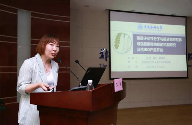 ▲大连医科大学李明教授讲授《莱菔子活性分子与肠道菌群相互作用增强肠屏障功能的机制研究及IBD产品开发》