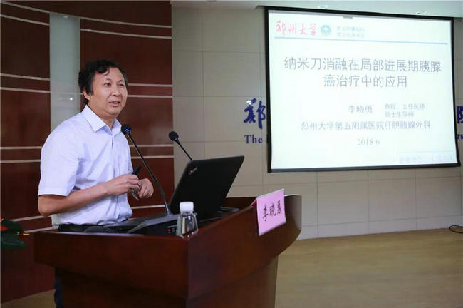 ▲ 郑州大学五附院李晓勇教授讲授《纳米刀消融在局部进展期胰腺癌治疗中的应用》