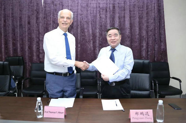 ▲ Thomas F. Meyer教授与郑州大学五附院院长郑鹏远签约