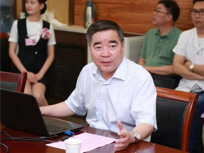 ▲ 郑州大学五附院党委书记王新军主持调研会议