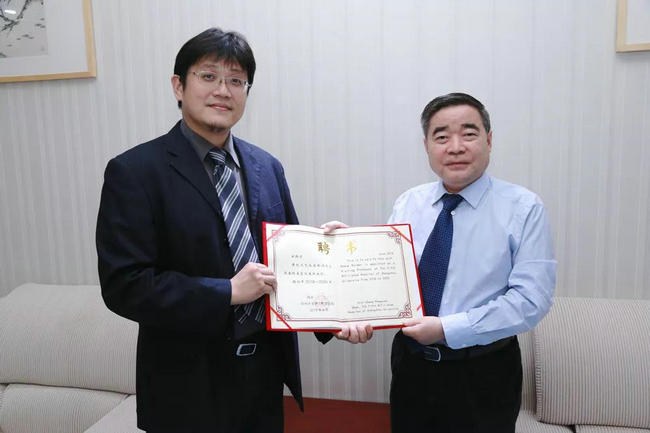 郑鹏远院长向台湾大学黄凯文教授颁发兼职教授聘书