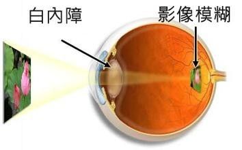 由老化、遗传、局部营养障碍、免疫与代谢异常、外伤、中毒、辐射等原因引起的晶状体代谢紊乱,导致晶状体蛋白质变性而发生混浊,称为白内障。此时光线被混浊晶状体阻扰无法投射在视网膜上,导致视物模糊。