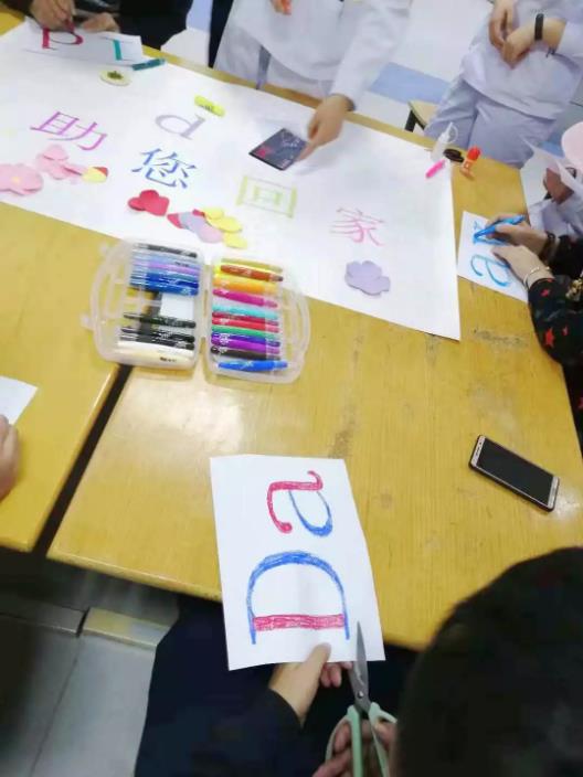 ▲ 活动开始,病人自由填充字母颜色,并进行裁剪
