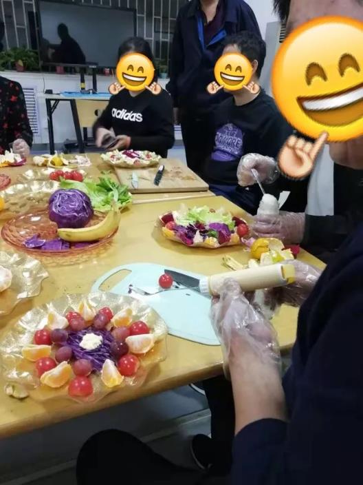 活动设计分为:1、在治疗师和家属的帮助下,小组病人合作制作庆祝展板;2、训练日常生活活动能力(IADL)中的做饭技能,带领病人一起制作水果沙拉,帮助病人更好的回归家庭。