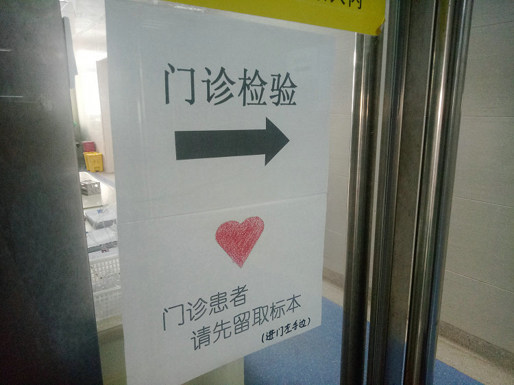 过渡期间,为方便患者能够快速顺利地完成检查,避免来回奔波造成不必要的麻烦。张琳主任专门指示在采血室设立了咨询台,及时指导患者正确检查。贴心的检验科老师们还特别制作了各式各样的提示信息和指示牌,一路从门诊贴到了医技楼,看这萌萌哒爱心提示,有没有被暖到呢?