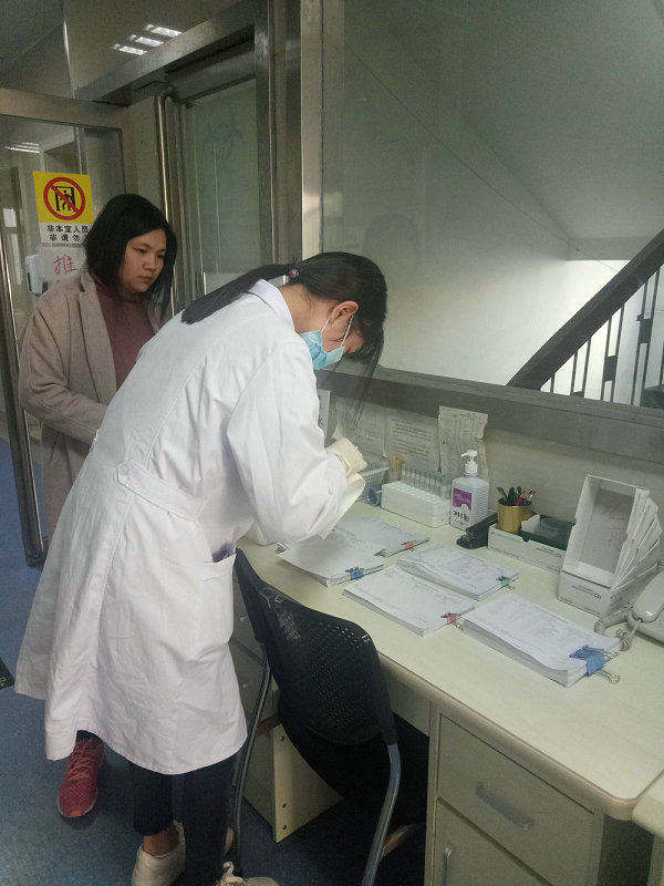 过渡期间,门诊检验室的工作环境和工作流程都发生了很大的改变,为了保证结果准确及时发放,大家认真投入工作,积极适应,快速熟悉新环境,一丝不苟地发好每一份报告。遇到性子急的患者,时刻牢记“以病人为中心”的服务宗旨,耐心解释,做好安抚工作,尽量使每一位患者满意。