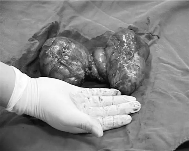 完整切除的双侧巨大甲状腺肿物