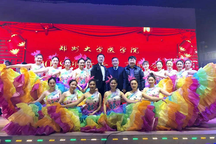 2018年12月29日,郑州大学医学院成立暨医学教育创办90周年元旦晚会在郑州大学东校区隆重举行。接到通知后,郑州大学五附院高度重视,由医院工会负责统一安排部署,积极组织,刻苦排练,选送节目——歌伴舞《节日欢歌》参加演出。