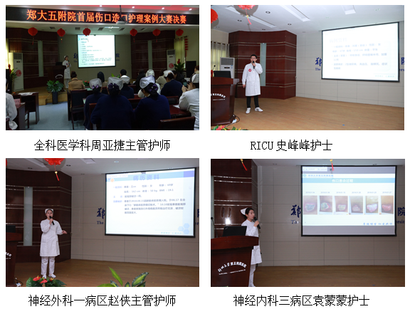 参赛选手分别从案例的基本资料、伤口评估、治疗原则、处理过程、经验总结等方面进行了详细的介绍,评审专家对汇报的案例从病例整体评估、图片质量以及课件汇报三方面进行评分,并针对选手汇报的案例给予专业性的指导意见。经过一番激励角逐,最后,康复医学科李娜荣获本次比赛一等奖;康复医学科马改丽、胃肠甲状腺外科申丹丹获得二等奖;呼吸与危重症医学科巩舒雅、全科医学科周亚捷、RICU史峰峰获得三等奖;神经外科一病区赵侠、神经内科三病区袁蒙蒙、神经内科一病区陈文倩、急诊科王杰获得优秀奖。