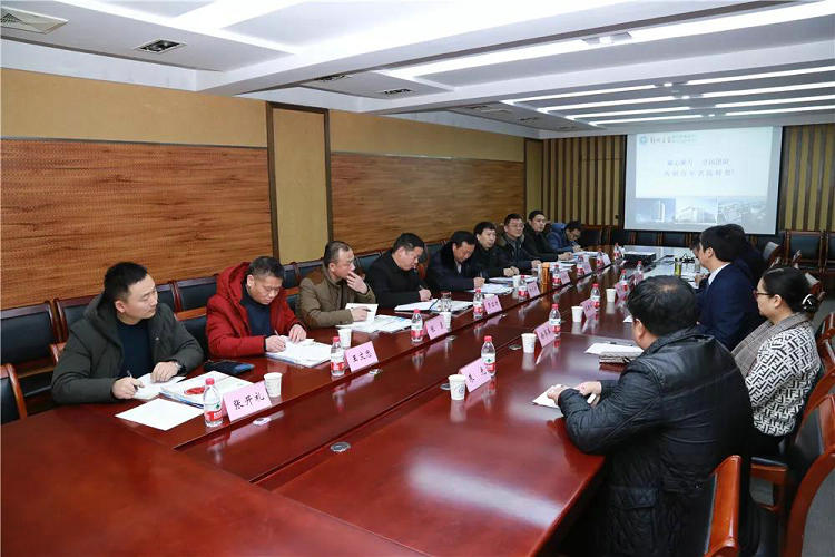 2019年2月14日上午,在行政楼二楼会议室与来访人员进行座谈。座谈会由郑州大学五附院党委书记王新军主持,院长郑鹏远用PPT形式作详细介绍。医院党委副书记、纪委书记徐翠英,副院长王少亭,工会主席朱光及各相关职能部门负责人参加了座谈会。