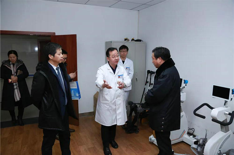 王新军书记陪同郑先刚主任一行实地参观了康复医学科、康复医学工程科、郑州大学马歇尔医学研究中心、消化内镜中心以及院史馆。通过各科室负责人详细介绍,来访人员对郑州大学五附院精湛的医疗技术、先进的医疗设备及优质的医疗服务给予了高度评价。