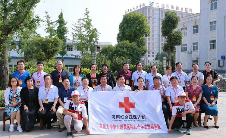 郑州大学五附院红十字志愿服务队自成立以来,认真开展送医工作,定期组织临床专家志愿者奔赴县、乡、村,开展义诊、查房、体检、手术、学术讲座等活动。通过传、帮、带的方式为基层医务人员提供服务,帮助他们提高诊疗水平,使广大患者得到更高水平的医疗服务。