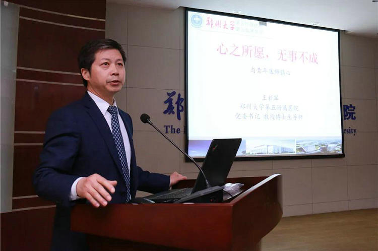 王新军书记作了题为“心之所愿,无事不成”的主旨寄语,通过对一则则凝练隽永、赋予哲理的小故事的精彩阐释,鼓励青年医师要做积极向上、有大局意识、有担当、有远大理想抱负的青年,殷切希望青年医师以五附院为家,以患者为亲人,踏实奋斗,在实现郑州大学五附院“复兴梦”的征程中,心之所愿,无事不成。