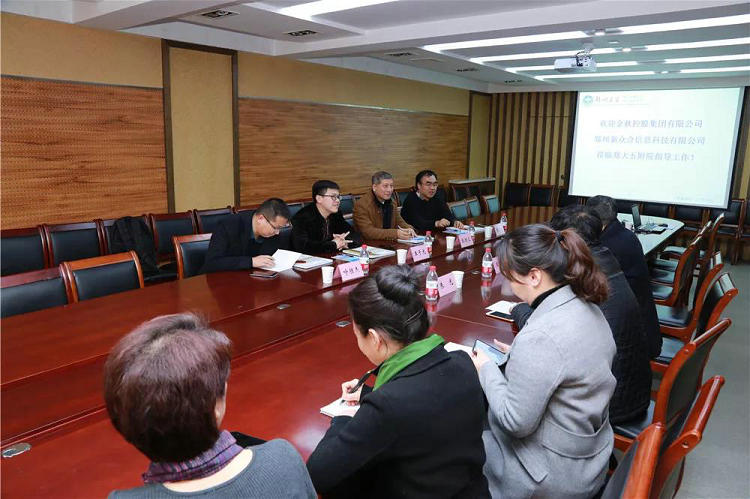 2019年2月27日下午金秋集团总裁王子龙,中国台湾卫生福利部医院评审委员、医养结合专家张胜立博士,金秋医养事业部总经理呼胜杰、郑州新众合信息科技有限公司总经理黄小宁一行4人来郑州大学五附院参访交流。郑州大学五附院副院长王少亭、工会主席朱光以及相关部门负责人在办公楼二楼会议室与来访嘉宾进行了座谈。