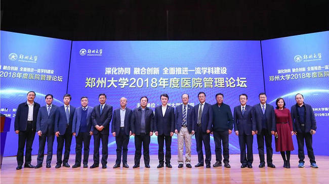 2019年3月2日,由郑州大学医学院主办的2018年度医院管理论坛在郑州大学医学院图书馆报告厅隆重举行。河南省卫生健康委副主任黄红霞,郑州大学副校长、医学院党工委书记、院长谷振清等领导,各附属医院班子成员,学校相关职能部门和医学院系负责人、医护人员代表等参加论坛。本次论坛围绕“深化协同、融合创新,全面推进一流学科建设”这一主题,各附属医院进行深入探讨与交流。对此次论坛,郑州大学五附院高度重视、精心准备,郑鹏远院长、王新军书记等医院班子成员和职能部门负责人近40人到场参会。