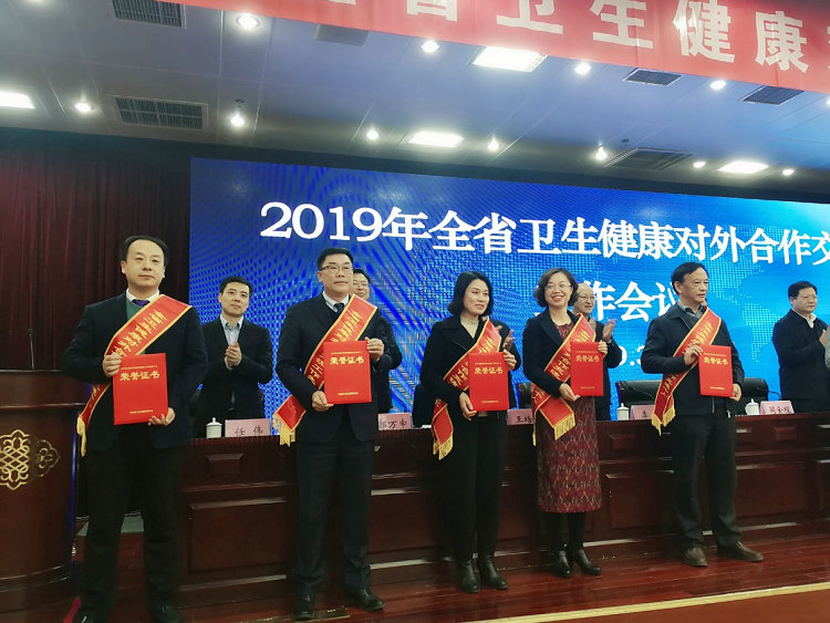 坚持融入“一带一路”,加强沿线合作交流,深入推进人才培养,扎实开展援外医疗工作。2019年3月1日,2019年河南省卫生健康对外合作交流工作会议在郑州召开。河南省卫生健康委员会党组书记、主任阚全程出席会议并讲话。省卫生健康委副主任王良启分别与承担2019年援外医疗队选派任务的省辖市卫生健康委、省直单位和医学高等院校签订目标责任书,并做工作报告。省纪委驻省卫生健康委纪检组组长李刚宣读了《河南省卫生健康委员会关于2018年度卫生健康对外合作交流工作情况的通报》。郑州大学五附院院长助理、科教科科长汤有才教授代表医院领导参加会议,并作为先进个人代表上台领奖。