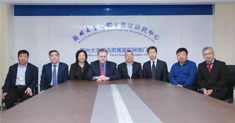 2018年4月,诺奖得主巴里•马歇尔(Barry J. Marshall)教授到访郑州大学五附院,就河南省国际联合实验室建设进行学术交流。本次到访,马歇尔教授还通过郑州大学五附院互联网医院门诊,与在河南首届基层好医生评选活动中当选“十佳家庭医生”的滑县村医吴义禄进行远程会诊交流。巴里•马歇尔教授说:“郑鹏远院长推动的互联网医院非常棒,通过这种远程会诊,能极大地提高基层患者和医生的信心,给予他们强大的技术支持,以后会定期在澳大利亚通过网络与郑州大学五附院的医生对话。”