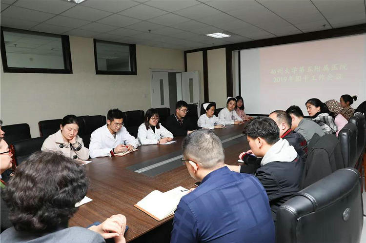 2019年3月14日下午,郑州大学五附院团委在规培楼十楼会议室召开2019年团干工作会议。党委副书记徐翠英和党办主任郭芹出席会议,20多名团干参加。会议由团委副书记吴彦勇主持。