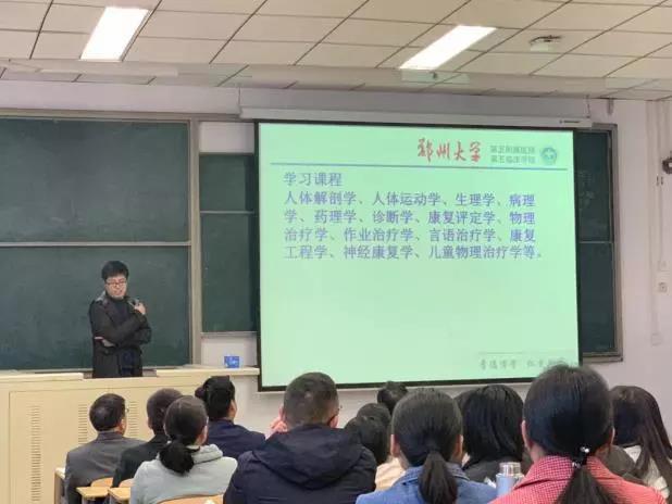 阳春三月,春意盎然,万物新生。2019年3月14日,受郑州大学五附院(第五临床学院)院长郑鹏远、党委书记王新军、副院长王兵委托,科教科组织郑州大学2017、2018级本科康复治疗学117名学生在郑州大学新区北核心教学楼2-203教室举行师生座谈会,目的是解析康复治疗学未来职业发展规划和就业前景。