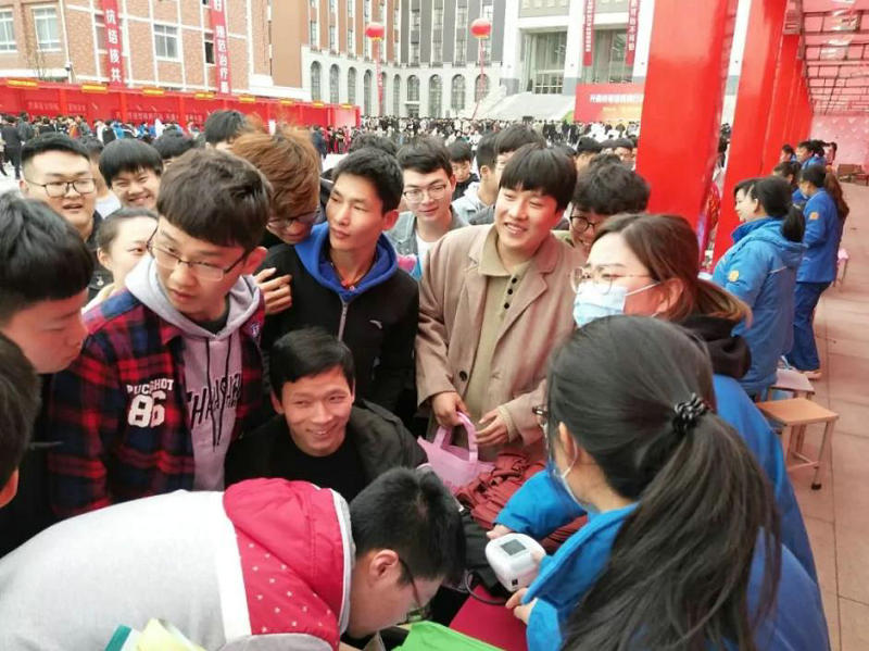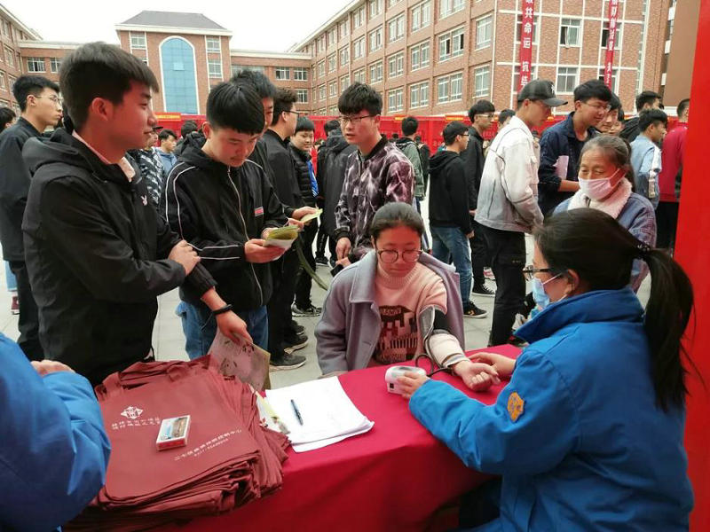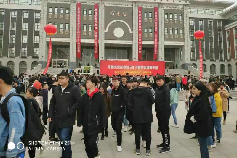 ▲ 广场上,二七区23家医疗机构为2500多名学生带来义诊