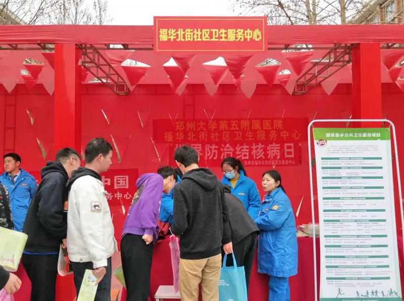 2019年3月24日是第24个“世界结核病日”,为加强结核病防治工作,提高公众及学生结核病防治知识水平,动员全社会行动起来预防和控制结核病,3月21日下午,郑州市二七区疾病预防控制中心在河南建筑职业技术学院开展以“开展终结结核病行动,共建共享健康中国”为主题的宣传活动。郑州大学五附院传染病专家张淑凤主任医师、医院下属福华北街社区卫生服务中心医务工作人员参加了此次活动。