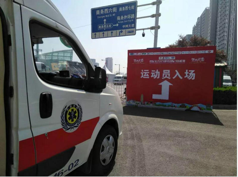 春回大地,万物复苏, 2019年3月31日上午,第十三届郑开国际马拉松比赛如约而至,参赛人数高达49000人。此次马拉松赛医疗保障任务由郑州120急救中心和开封120急救中心共同承担。郑州大学五附院作为郑州市120急救中心的第16号急救站,全程参与了此次比赛的所有医疗保障工作。
