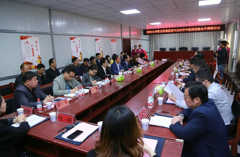 签约揭牌仪式在汝州市中医院举行。郑州大学五附院党委书记王新军、工会主席朱光、汝州市卫健委主任张武钦、汝州市红十字会会长郭光宗、汝州市中医院党委书记王福帅、院长张宇航等领导参加了启动仪式。仪式由汝州市中医院院长张宇航主持。