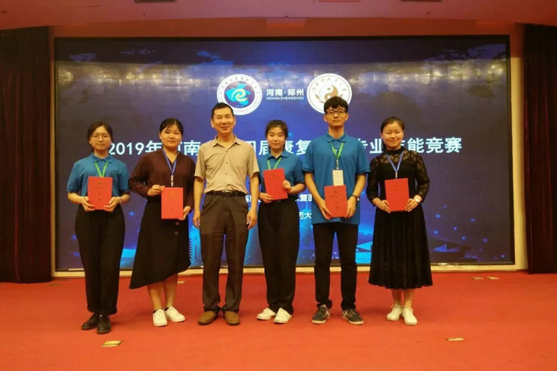 2019年5月17-18日,由河南省康复医学会主办、河南中医药大学承办的2019年河南省康复治疗技术专业技能竞赛成功举办。由郑州大学康复医学系(依托郑州大学第五临床学院设立)2016级康复治疗学专业郭雯、赵雪琪、王源增三位同学组成的代表队,在郑州大学康复医学系主任(郑州大学五附院院长)郑鹏远教授的大力支持下,康复治疗学教研室主任董安琴博士及全体老师的帮助和鼓励下,不负众望,斩获团体和个人一等奖,4项优秀奖(包括个人优秀奖、优秀指导教师奖和优秀组织奖)。