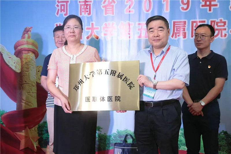 在仪式上,郑鹏远院长、叶英军院长分别代表郑州大学五附院和叶县人民医院签订医疗联合体合作协议,郑院长为叶县人民医院授牌。