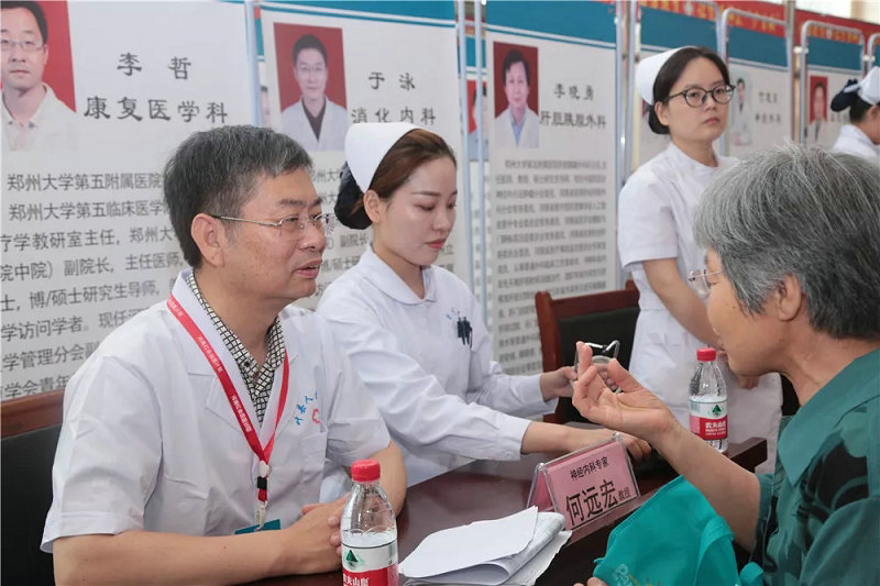 2019年6月18日上午,郑州大学五附院按照省红十字会安排,院长郑鹏远、工会主席朱光带领由9名临床科室专家、院办、感染管理科、宣传科、医保办、医疗协作办等职能科室负责人及相关工作人员组成的志愿服务队,赴叶县参加河南省“红会送医计划”实施项目启动仪式,在当地深入开展“送知识、送技术、送服务”活动。