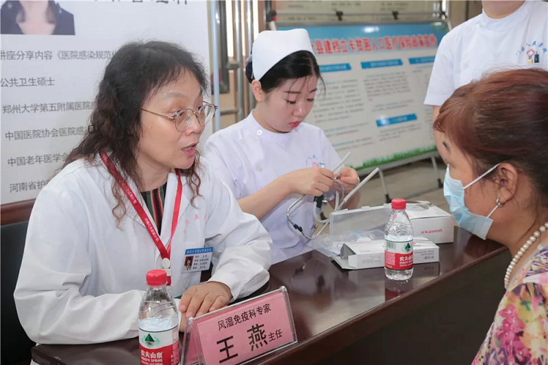 仪式结束后,郑州大学五附院呼吸与危重症医学科主任李宏云,神经内科一病区主任何远宏、消化内科一病区主任于泳、肝胆胰腺外科主任李晓勇、急诊科主任陈炅、神经外科三病区主任付旭东、风湿免疫科主任王燕、感染管理科科长吴睿、康复医学科副主任关晨霞、血管外科副主任崔文军10名专家、教授分别通过查房、义诊、疑难病例讨论、技术指导、授课等活动,秉承“奉献、友爱、互助、进步”的志愿服务精神,认真落实 “送医”任务。与当地医生、患者进行了深入的交流,得到医生和患者的一致肯定和好评。