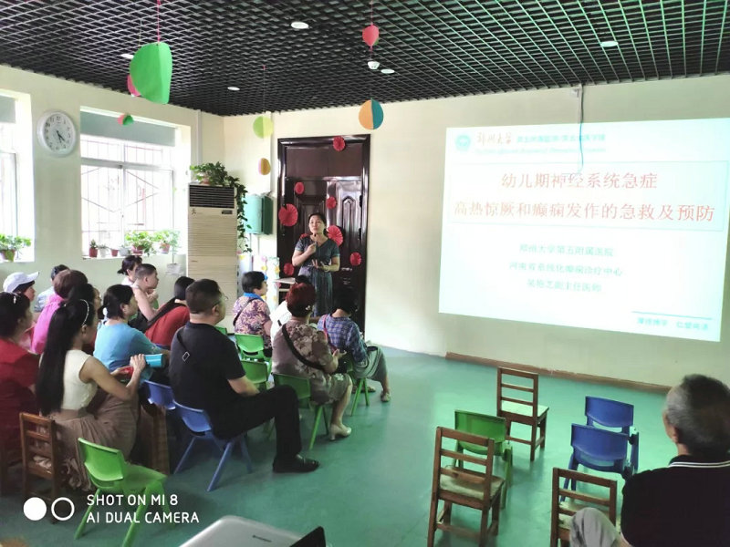 2019年6月14日,郑州大学五附院神经外科二病区吴艳芝副主任医师受郑州市友爱幼儿园园长邀请,为老师及家长进行《幼儿期神经系统急症(高热惊厥和癫痫发作)急救与预防》知识讲座
