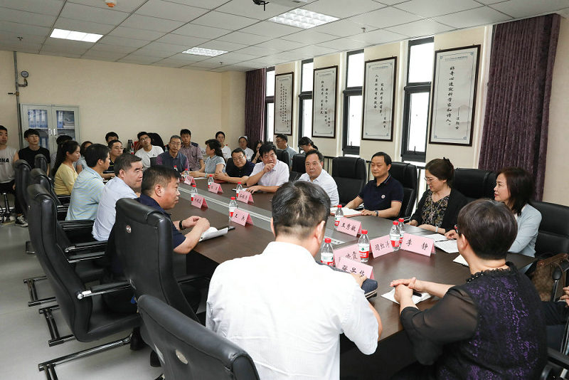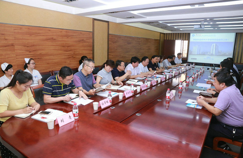 2019年7月17日上午,郑州大学党委副书记、医学院党工委书记、院长谷振清、医学院副院长俞海洋、医学院本科生党委书记张洁、后勤管理处副处长王秀敏、医学院综合办公室负责人孙建华、医学院医院管理办公室负责人李静、医学院学生工作办公室负责人雷芸芸、医学院研究生办公室负责人闫红涛、临床医学系副主任李同领、医学检验系副主任陆晓霞、医学院综合办公室科长孙常程、医学院教学办公室科长张景华、医学院辅导员刘青等一行13人莅临郑州大学五附院看望了在此实习的郑州大学130名临床医学专业、27名康复治疗学专业、10名医学检验专业、22名护理学专业实习生,并进行了深入座谈交流及实地视察学生的住宿情况。郑州大学五附院院长郑鹏远、党委书记王新军、党委副书记兼纪委书记徐翠英、副院长王兵、王少亭、傅聿铭、工会主席朱光及科教科、各职能部门、教研室负责人参加了此次座谈。