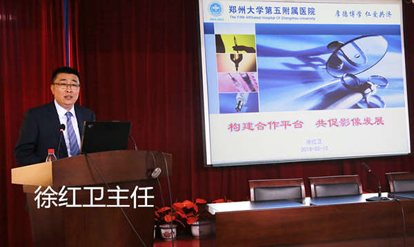 王兵副院长到会发表致辞,对胡道予教授、史大鹏教授以及各位主任的到来表示热烈欢迎,肯定了此次论坛的举办意义,称赞论坛为我院“百年院庆”献上一份学术之礼,倡导像这样有意义的论坛以后能定期召开,并希望通过此次会议的学习交流活动,进一步提升我院和各医院放射影像科的实力乃至影响力,并预祝此次会议圆满成功。