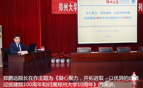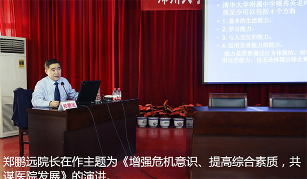 4月16日下午,我院院长郑鹏远教授在门诊五楼会议室为全院青年医生做了一场题为《凝心聚力,开拓进取,以优异的成绩迎接建院100周年和归属郑州大学10周年》及《增强危机意识、提高综合素质,共谋医院发展》的专题报告。