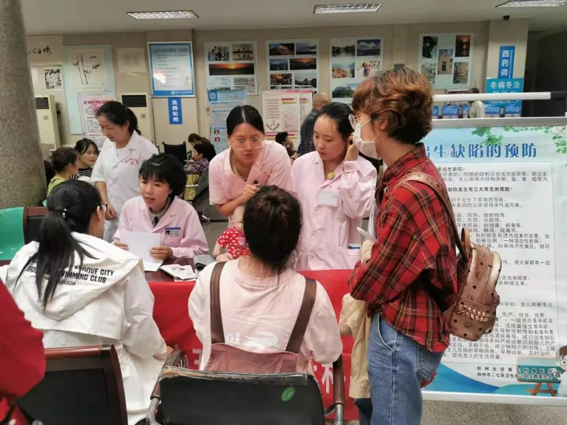 9月12日是全国出生缺陷预防宣传日,为进一步做好出生缺陷防控工作,宣传普及优生优育知识,2019年9月12日上午,由郑州大学五附院组织的以“出生缺陷早预防、健康中国我行动”为主题的大型宣传活动在医院门诊大厅举行。妇产科李巧云、苏纯、党国伟、李文勤、王军英等医护专家对免费开展出生缺陷产前筛查和新生儿疾病筛查项目大力宣传,力争把这项利国利民的民生实事贯彻落实到位。