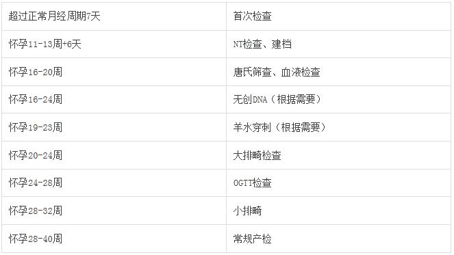 产前检查时间表: