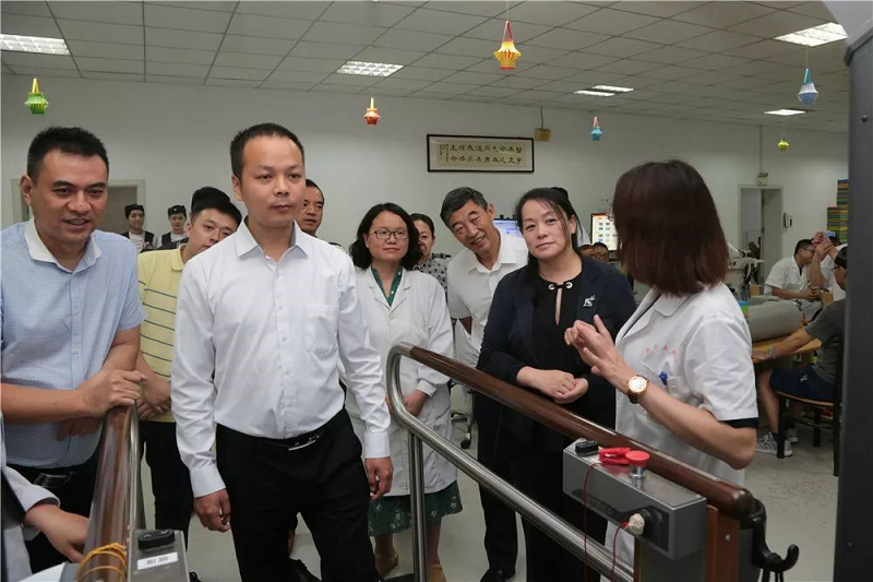 座谈会后,项理事长一行在王少亭副院长及相关职能部门负责人的陪同下实地察看了康复医学科、康复医学工程科、医学整形美容科,并亲身体验数字化步态评估训练分析系统等先进康复设备。项理事长一行对完整的康复医学工程流程、精准评估设备、3D成像技术、OT/PT多功能智能化训练大厅、老年智能风险评估系统、语言和吞咽智能评估训练系统等老年康复功能区域、康复训练机器人等再次表示了高度的肯定。