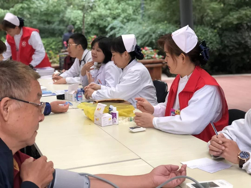 义诊活动现场,医护人员尽职尽责,对居民进行血压血糖测量等常规检查,并针对每位居民的个体情况耐心讲解疾病相关知识及注意事项,必要时协助预约就诊检查,社区居民表示收获了知识与关爱。