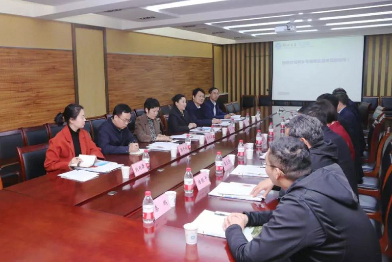2019年11月7日下午新乡平原示范区管委会主任杨洁、新乡市政协驻平原示范区联络处主任王建华、文教体卫局局长曹爱英、商务局局长冯正奎、文教体卫局副局长龚子柱、商务局招商科科长鲍雨浛一行6人到访郑州大学五附院,调研考察医养结合相关工作并就双方进一步开展合作进行座谈交流。河南新大地集团相关领导参加了调研交流。