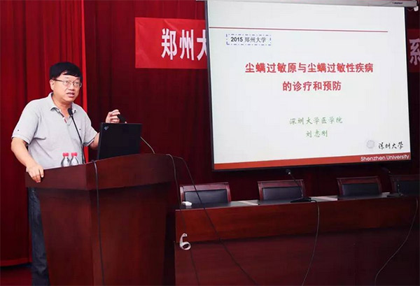 深圳大学医学院副院长刘志刚教授,是国务院政府特殊津贴专家,国家百千万人才工程(第一、二层次人选),国家级有突出贡献的中青年专家。他的主要研究方向是过敏性疾病变应原的基础研究和过敏性疾病变应原疫苗的研制及应用基础研究。他此次演讲的题目是《尘螨过敏原与尘螨过敏性疾病的诊疗和预防》,他结合自己的最新研究成果,通过形态学和分子生物学的方法,揭示了尘螨是最常见、最主要的吸入性变应原,是造成人类过敏反应和过敏性疾病的主要原因。螨性变态反应疾病占临床上各种变态反应疾病的70%左右,是一种尚不为人们了解的但却是一种已经普遍存在的致敏途径。对如何诊疗和预防尘螨过敏性疾病,刘志刚教授也提出了自己独到的见解和具体的方法。
