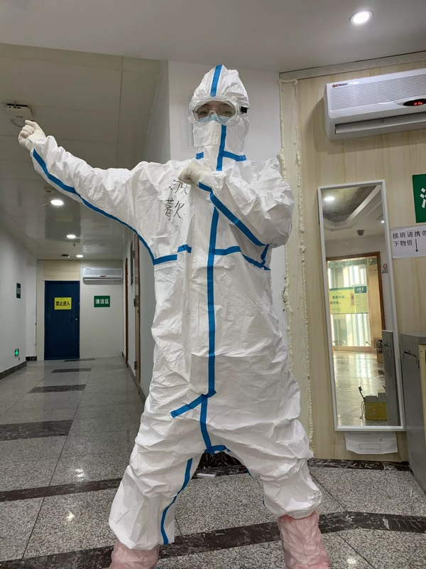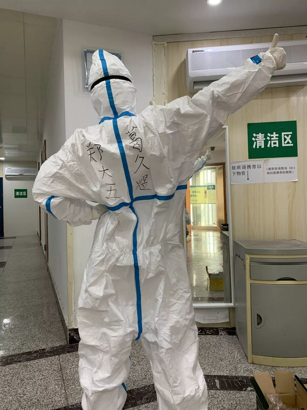 在给5号病床的陈阿姨做治疗的时候,她突然叫出了我的名字,并问我:“你昨天早上是不是也上班了?”我先是一愣,紧接着笑着问:“阿姨,您只能看到我的眼睛,怎么会知道我的名字?”她说,昨天我去帮她收标本,她记住了我的声音。瞬间我的眼睛就湿润了,但是我不敢让眼泪掉下来。因为我知道如果我哭了,我的口罩就浪费了,需要出去再重新更换一整套的防护装备。在这个物资紧张的关头,每一套防护用具都弥足珍贵。陈阿姨跟我说,她老家也是河南的,看到我们这群老乡,她觉得特别亲切和暖心。她说:谢谢你们,谢谢全国各地赶来支援武汉的医护人员,武汉有你们一定会好起来的。治疗结束后,陈阿姨对我说:“你一定要保护好自己,我就不碰你了。”