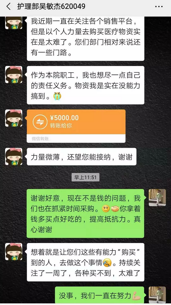 捐资捐物皆义举,捐赠有情,关爱无价。一份份爱心足以体现社会的温暖,也体现了全国人民万众一心、同舟共济对抗击疫情的决心!他们真诚的关爱,无私的帮助,给身处疫情最前线的医务人员带来了巨大的精神动力!