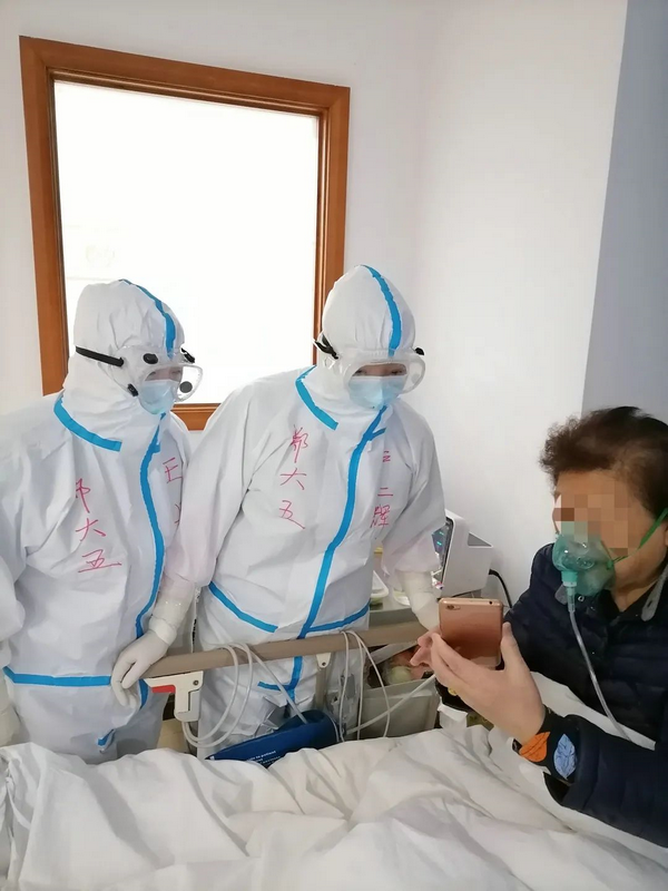 当我安顿好新病人,开始巡视病房时,1床朱阿姨正在和她刚刚出院的女儿视频,见到我时,立马将镜头转向我说:“河南医疗队真了不起,是你们给了我第二次生命,快谢谢他们,女儿。”患者女儿也是连声道谢:“我妈妈能恢复这么快,都是你们河南医疗队的功劳。”这是一位70多岁的阿姨,来的时候生活不能完全自理,吃喝拉撒都需要护士协助,现在精神状态饱满,已经完全可以自理。