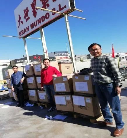 由医务科孙乐羽副科长联系的西班牙“卡斯特利翁华侨华人总会”秘书长刘安迪先生、会长周明亮先生,将960套防护服捐赠医院。