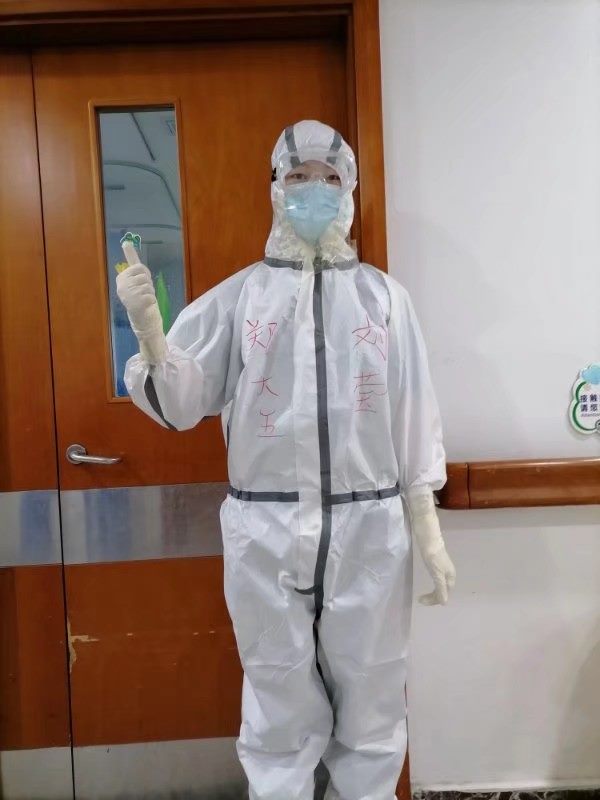 在做好病人疾病护理的同时,要负责病人的卫生,同时要给予患者心理护理。每次协助患者翻身、下床,身上都会汗流浃背,缺氧胸闷和呼吸不畅是我们都必须要克服的问题…不管怎样,这些困难不会让我们退缩,却会使我们愈挫愈勇,我们会坚持到底,这是我们的工作,也是我们可以为患者做的一些事情,希望能为他们减少痛苦,使他们早日康复。隔离病房里没有陪护没有家属,在这里,我们既是医务工作者,也是家人。看到患者的饭凉了,主动加热端给他们,患者方便后帮病患及时倒掉,冲洗便盆,在我看来是再平凡不过的一个个小举动,患者们却很感动地说谢谢你,谢谢你,一遍又一遍不停地说着。唠家常、聊生活,心与心的距离也越来越近,人与人之间的关系也越来越浓,带着口罩,他们看不到我们的笑容,但我们用实际行动去温暖、去呵护,我们能够给予的,不仅是药物治疗还有心灵上的慰籍。