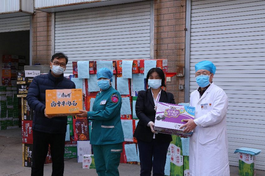 新冠肺炎疫情发生以来,郑州大学五附院勇担社会责任,得到社会各界的广泛支持和点赞。看到医院发布的接受社会捐赠公告后,许多爱心团体、企业、人士向医院捐赠防护物资,极大地缓解了医院物资紧张局面。医院对他们的爱心义举表示感谢的同时,多措并举,合理调配,保障院内医务人员的防护安全。同时将社会各界捐赠的水果、蔬菜、方便面、矿泉水等慰问品以及口罩及时分发到一线工作人员和援鄂医疗队员家属手中。