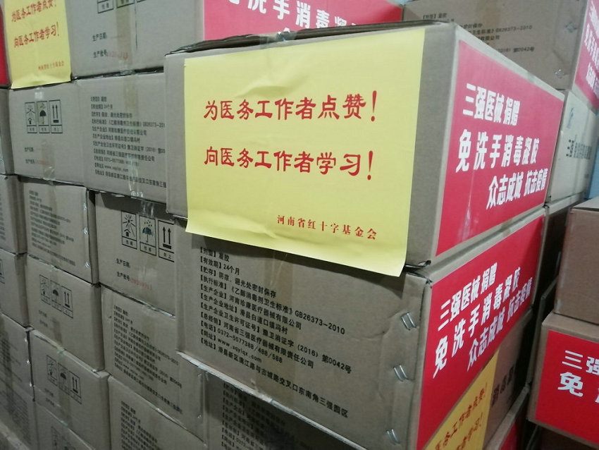 近日,郑州大学五附院再次收到一批捐赠物资。河南省红十字基金会向医院捐赠一批“免洗手消毒凝胶”;河南省慈善总会和河南省非遗管理委员会向医院捐赠医用无菌手套10000双。