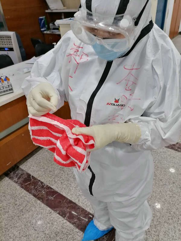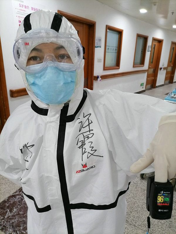 许霞同志主动请缨参加河南第一批援鄂医疗队。来到受援的武汉四院古田院区后,面对陌生的环境,面对未知的隔离病房,她尽快地熟悉工作的各项制度,熟悉穿脱防护服的流程,尽快熟悉在戴着双层手套、毫无手感的情况下给病人扎针,抽血,要保证针针见血,减轻病人的痛苦,要把消杀工作做到安全到位。密闭的环境,大量的工作,闷热的防护服都是她要面对的严峻挑战。在这种情况下,闷、喘、虚脱是常见的症状,但她都能克服,保证工作的效率和质量。