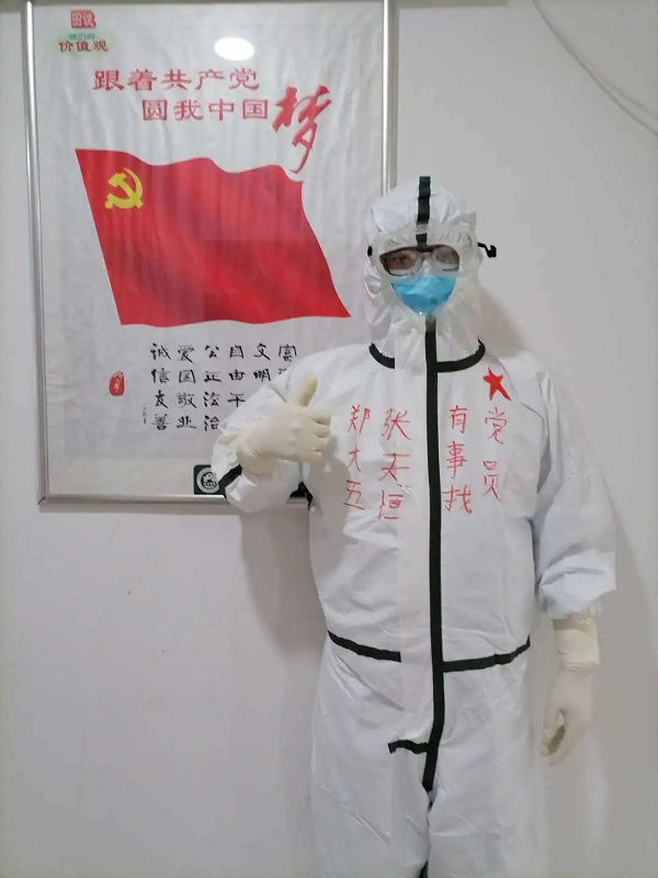 张天恒同志主动请缨参加河南省首批支援湖北医疗队,也是河南首批援鄂医疗队危重症救治组组员。刚到达武汉硚口区武汉第四医院时,他迅速熟悉工作流程、了解相应防护知识,短时间内就掌握了应对新型冠状病毒的措施。在“阵地”坚守的60天里,他服从安排、严格防护,不怕苦、不怕累、不讲条件、忘我地工作,为病人早日康复争取时间,向党员学习向党组织靠拢,将党的温暖带给患者。